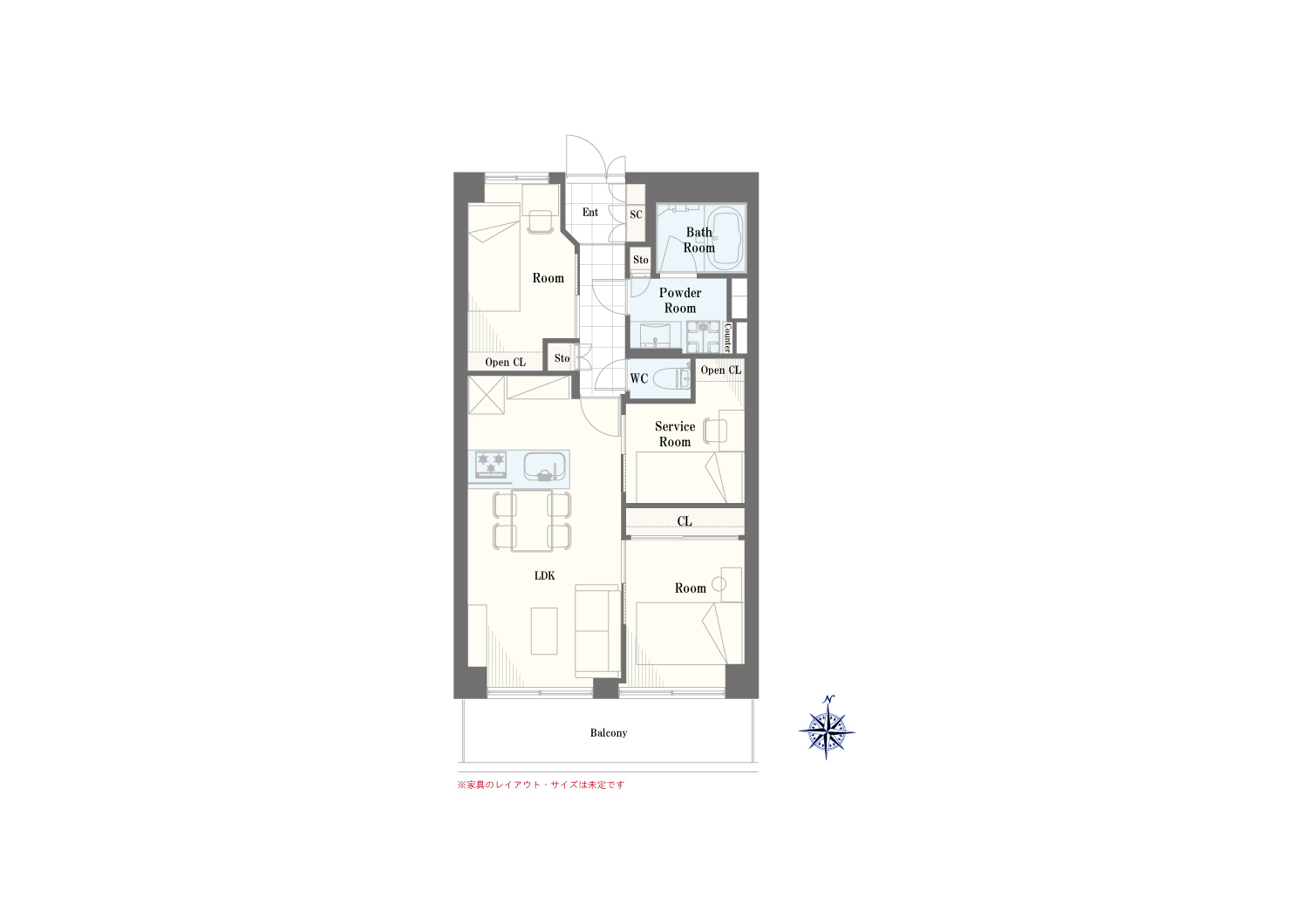 - 専有面積 : 56.00m²