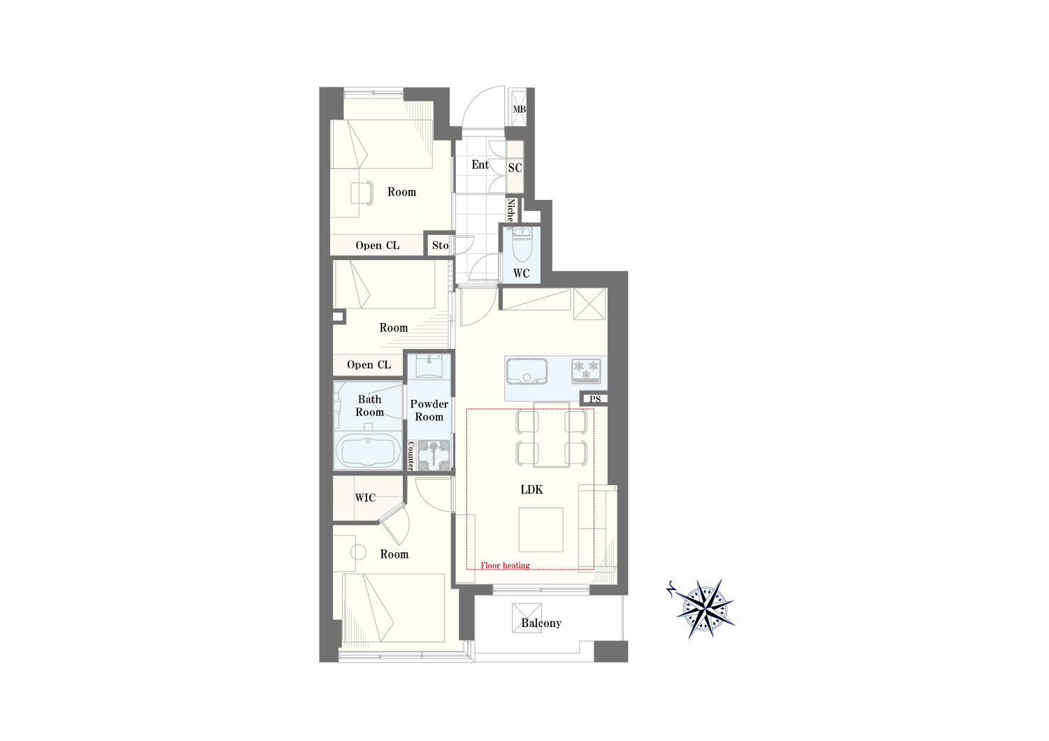 - 専有面積 : 59.08m²