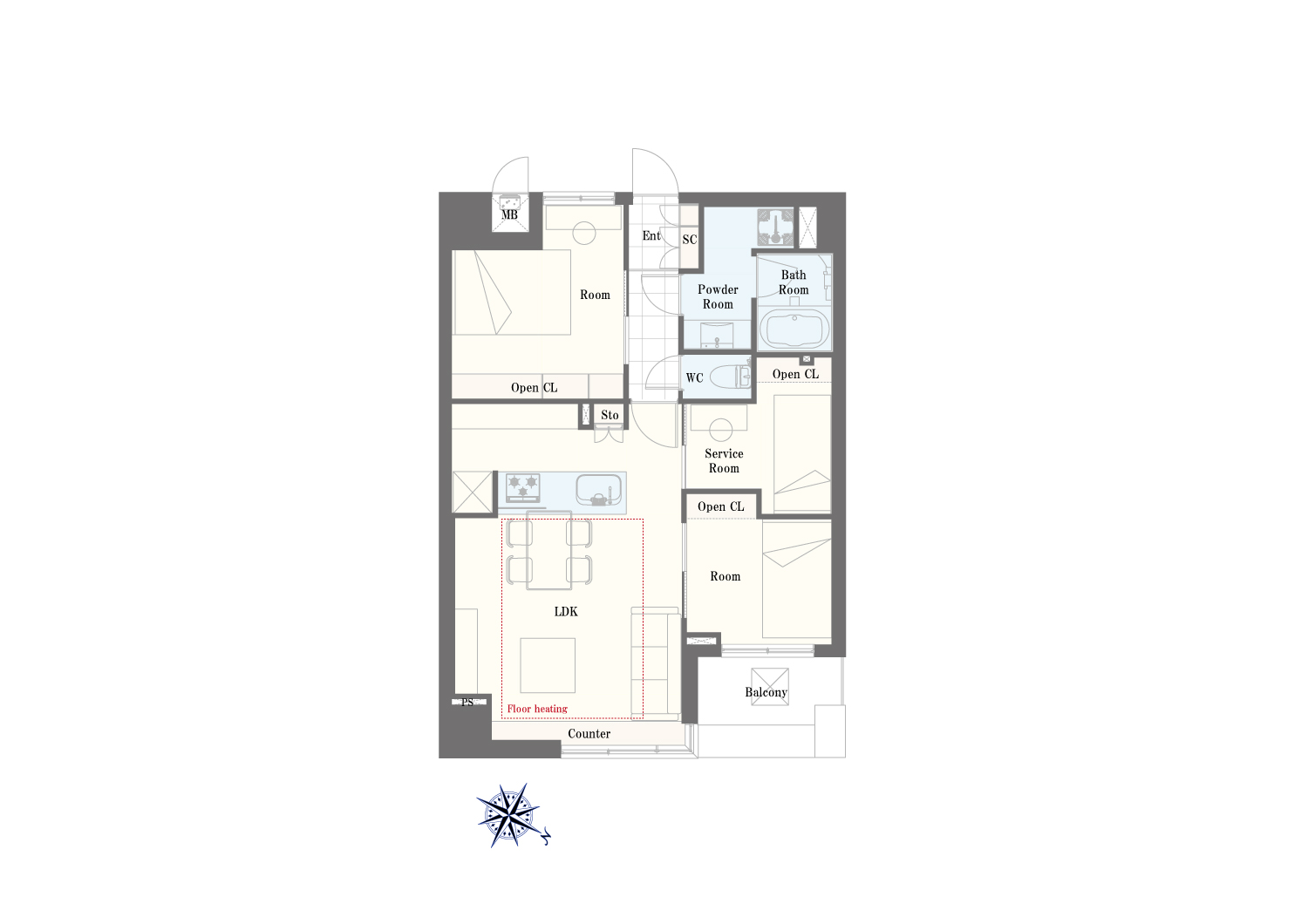 - 専有面積 : 62.42m²
